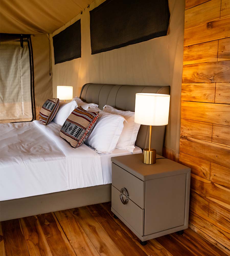 Spacious, elegantly furnished tents with en-suite facilities, cozy beds, and private verandas where sunrises, sunsets, and starlit skies become unforgettable memories.